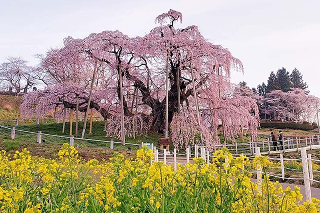 「三春滝桜」は、樹齢1000年以上と推定される国指定天然記念物のベニシダレザクラで、日本三大桜のひとつに数えられています。