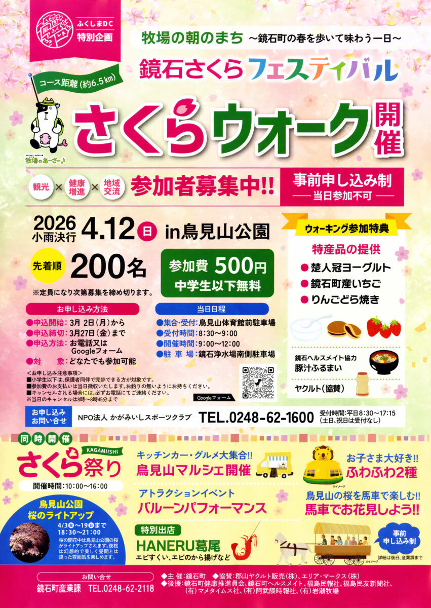 鏡石町でふくしまデスティネーションキャンペーン(ふくしまDC)特別企画「鏡石さくらフェスティバル」の「さくらウォーク」に参加しませんか?