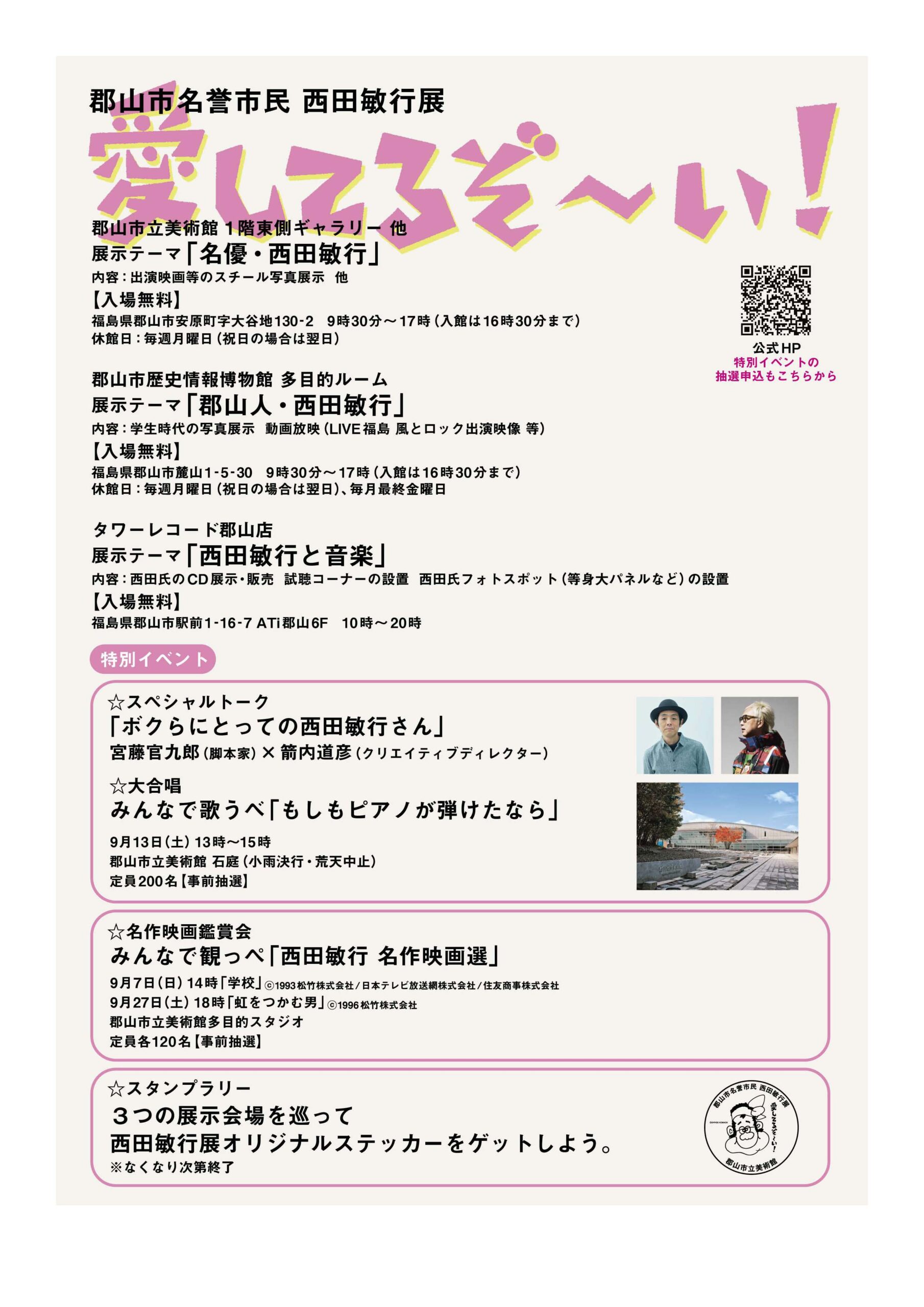 【イベント情報】郡山市名誉市民 西田敏行展「愛してるぞ~い!」(9/6~28)