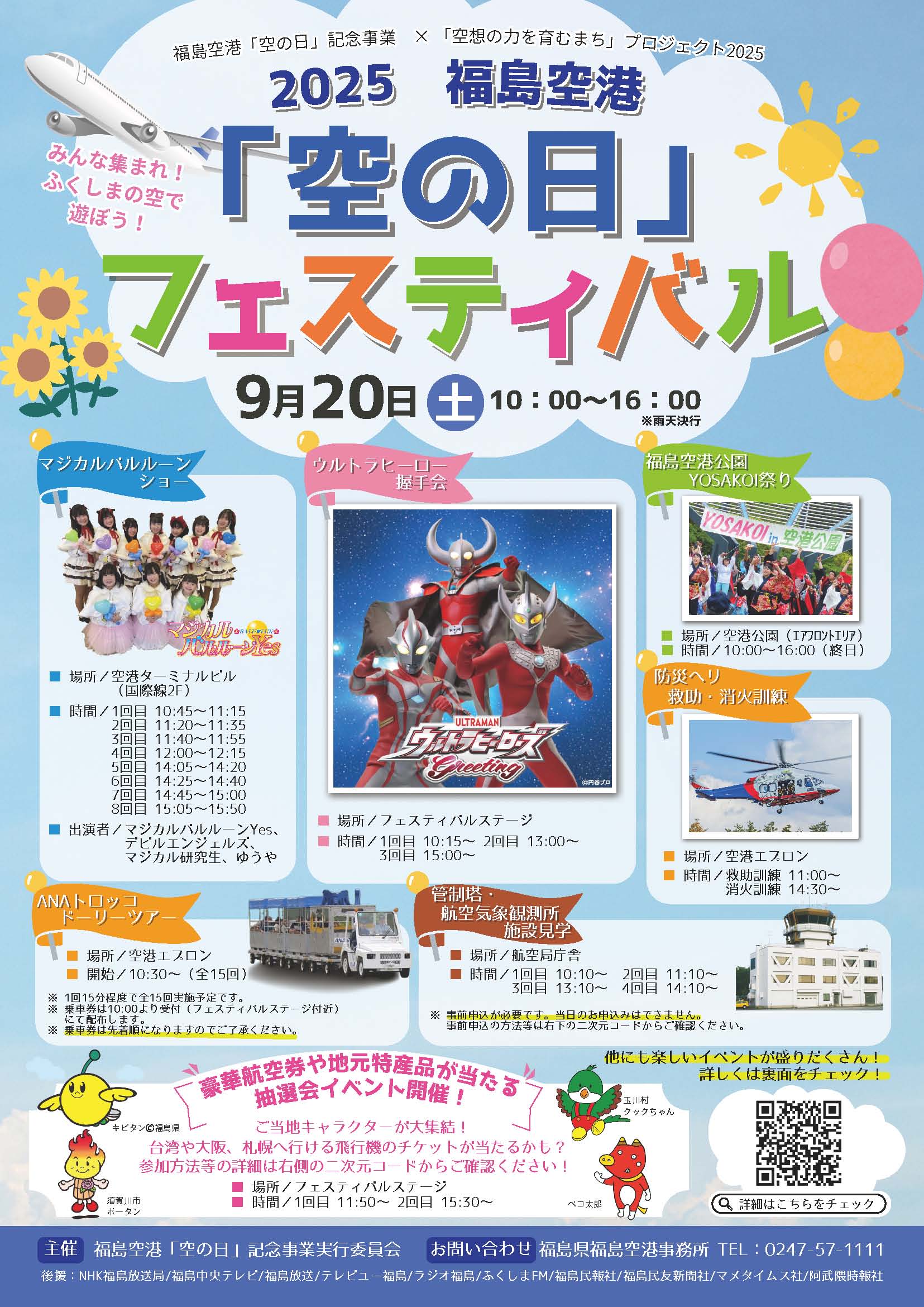 〇開催日時:2025年9月20日(土) 10:00~15:00(雨天決行) 〇開催場所:福島空港(石川郡玉川村北須釜はばき田21)・福島空港公園(エアフロントエリア)
