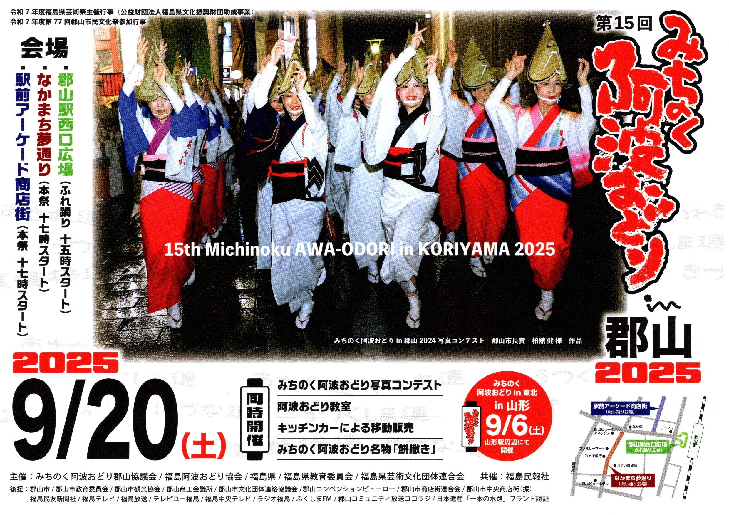 郡山駅西口広場、なかまち夢通り、駅前アーケード商店街にて、「みちのく阿波おどりin郡山2025」を開催します。