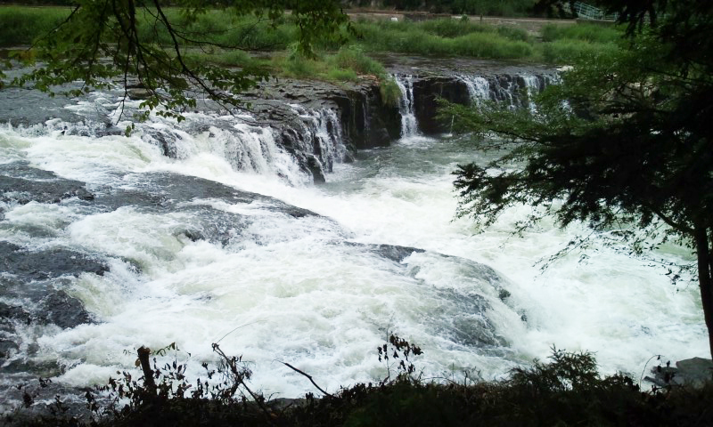 石川町・玉川村・平田村に接する母畑湖の、北須川への河口付近にある水量豊かな滝です。